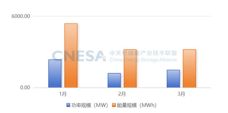 图1 2025年1-3月中国新增投运新型储能项目装机规模
