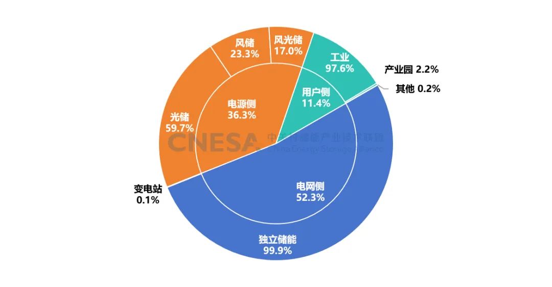 技术方面,投运项目以电化学储能技术为主,锂电项目规模占比98%,磷酸铁锂电池技术主导。混合储能方面,应用磷酸铁锂电池+全钒液流电池+钠离子电池+飞轮、磷酸铁锂电池+钠离子电池、磷酸铁锂电池+超级电容、磷酸铁锂电池+全钒液流电池混合储能技术的独立储能项目相继投运;国内首个混合构网型储能项目——国能宁东新能源混合储能示范电站投运,该项目采用锂离子电池+钠离子电池+超级电容储能技术。此外,云南文山构网型钠离子电池储能项目、瓜州北大桥白杨100MW风电项目等采用非锂技术的储能项目也相继投运。